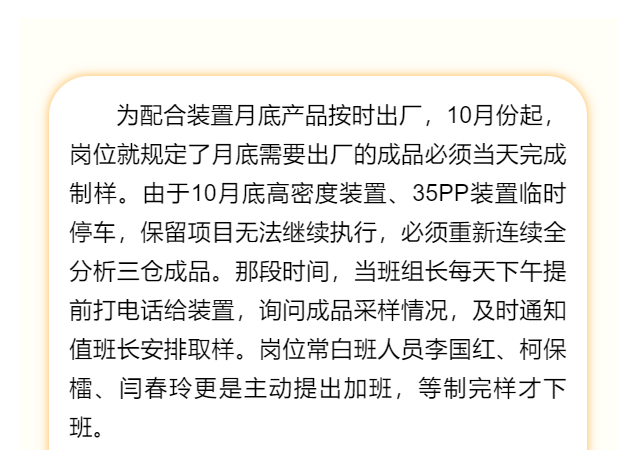 化验中心塑料岗齐心协力保产品出厂
